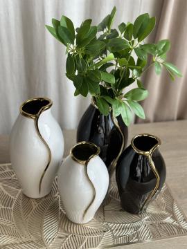 Керамическая ваза «Line» – элегантность в каждой детали! Ваза «Line» – это сочетание утонченной формы, современного стиля и благородных оттенков. Плавные изгибы и изящная золотая линия создают эффект движения, придавая вазе динамику и изысканность.