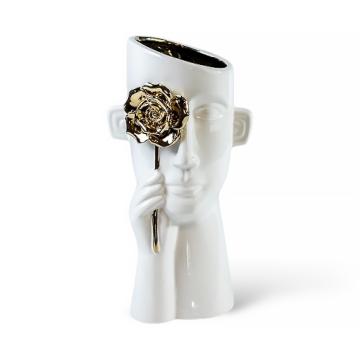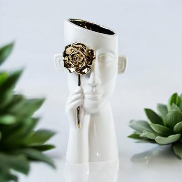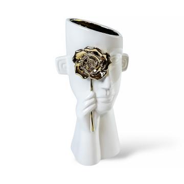 Описание Ваза керамическая Лицо с розой белая 25,5 см