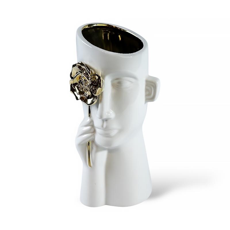 Керамическая ваза «Лицо с розой» – это не просто ваза, а выразительный арт-объект, сочетающий в себе эстетику и глубокий символизм. Уникальный дизайн, плавные линии и золотая роза создают эффект загадочности и элегантности. Это не просто ваза – это настоящее произведение искусства, которое украсит любой интерьер.