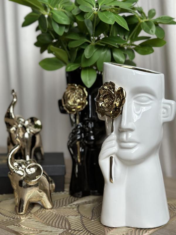 Керамическая ваза «Лицо с розой» – это не просто ваза, а выразительный арт-объект, сочетающий в себе эстетику и глубокий символизм. Уникальный дизайн, плавные линии и золотая роза создают эффект загадочности и элегантности. Это не просто ваза – это настоящее произведение искусства, которое украсит любой интерьер.