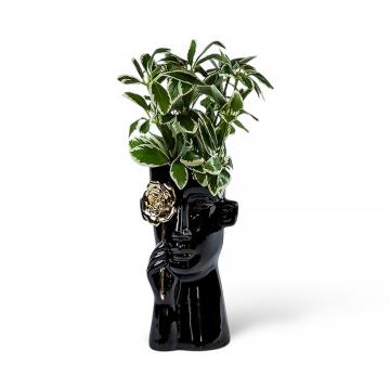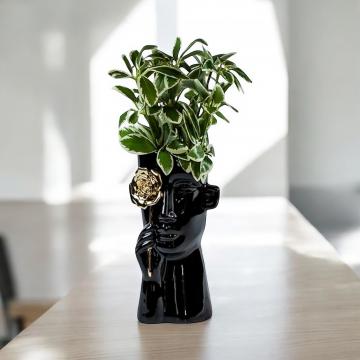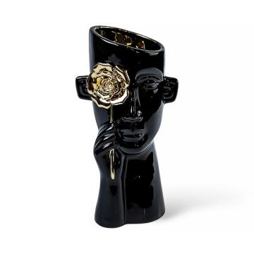 Описание Ваза керамическая Лицо с розой черная 25,5 см