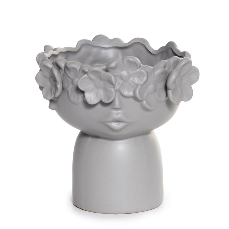Описание Ваза серая керамическая Лицо с цветами 19х10х19см