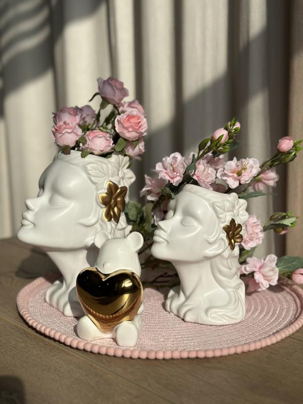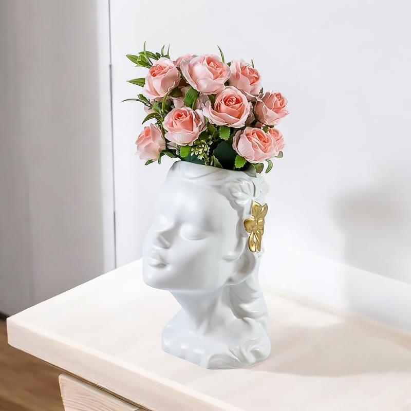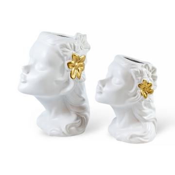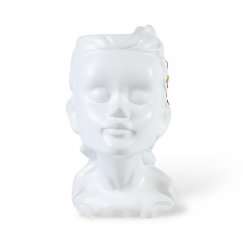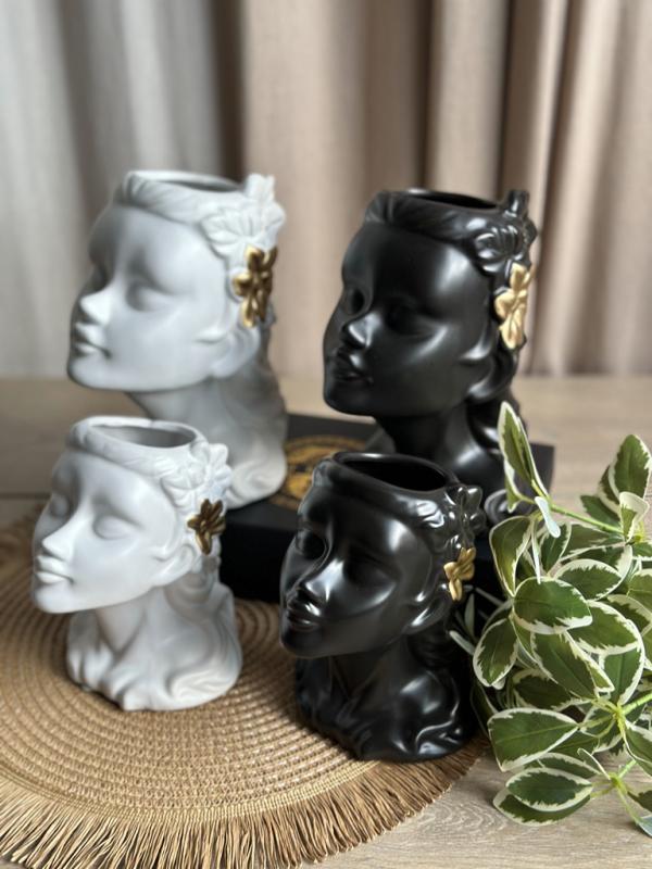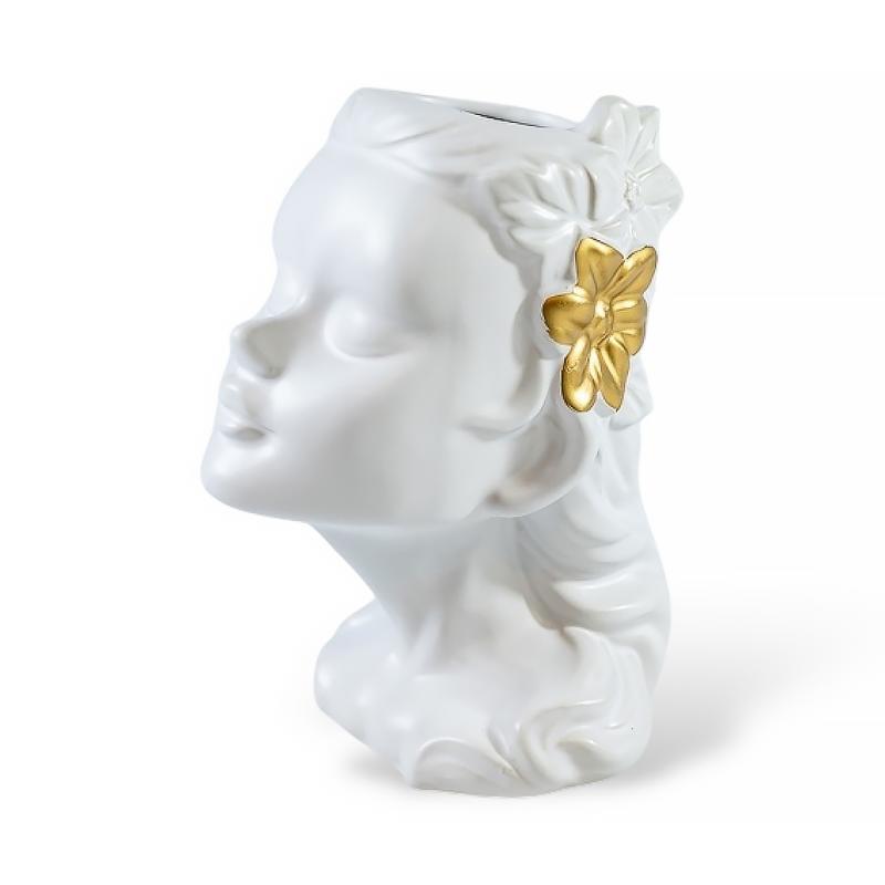 Керамическая ваза «Муза» – вдохновение в вашем интерьере. Утонченная форма вазы в виде женского лица с изящными линиями и выразительными деталями делает керамическую вазу стильным акцентом в интерьере. Благородное матовое покрытие и золотистые элементы добавляют изделию изысканности и шарма.