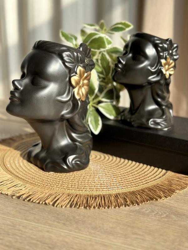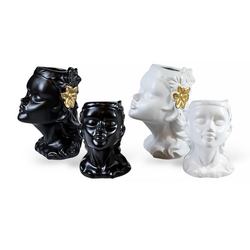 Керамическая ваза «Муза» – вдохновение в вашем интерьере. Утонченная форма вазы в виде женского лица с изящными линиями и выразительными деталями делает керамическую вазу стильным акцентом в интерьере. Благородное матовое покрытие и золотистые элементы добавляют изделию изысканности и шарма.