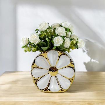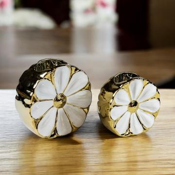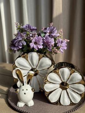 Ваза керамическая Ромашка белая с золотом 20,8 см