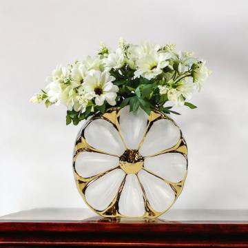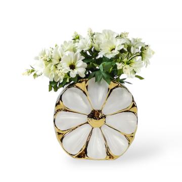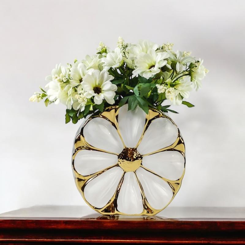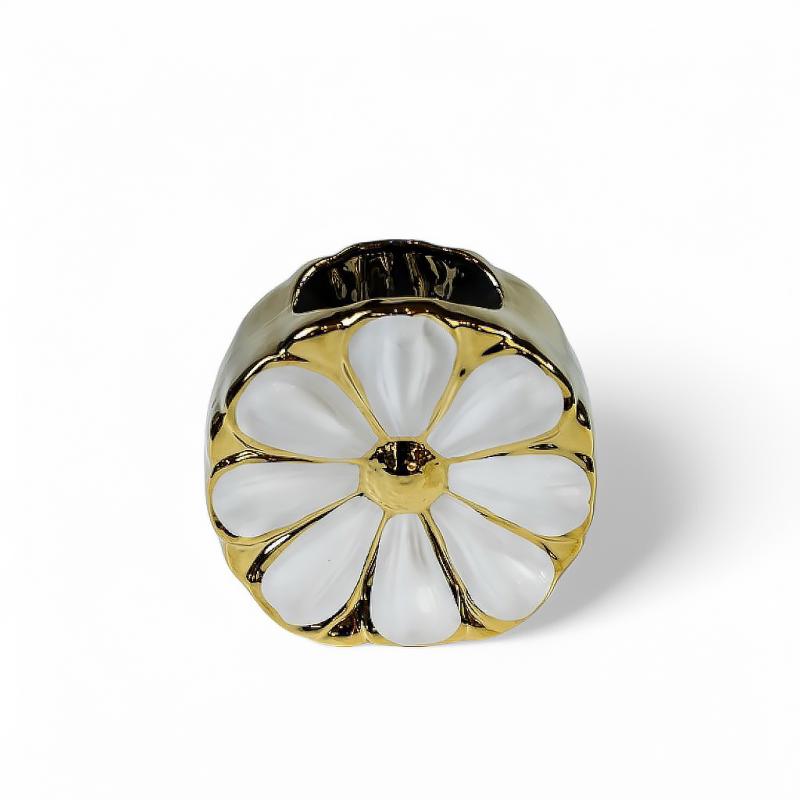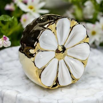 Описание Ваза керамическая Ромашка белая с золотом 20,8 см