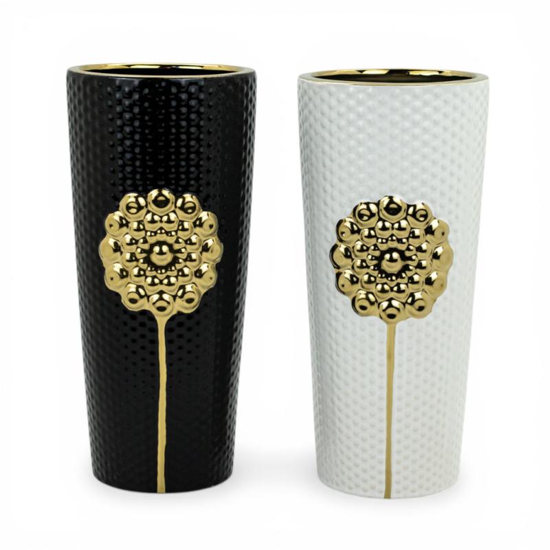 Ваза керамическая Golden Bloom черная с золотом 27см