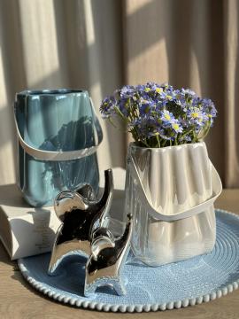 Ваза керамическая Сумка Fluid голубая 17,5 см