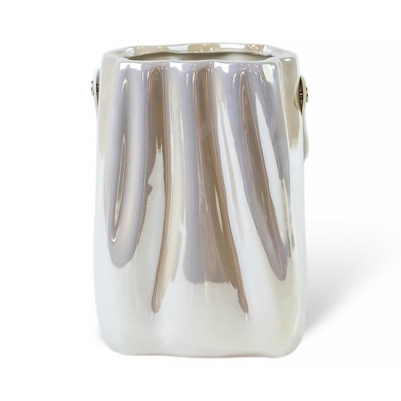 Описание Ваза керамическая Сумка Fluid белая 17,5 см