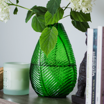 Микроклимат дома складывается из элементов декора. Стеклянная ваза «Листик» будет интересным решением для современных интерьеров.Изделие в скандинавском стиле обращает на себя внимание интересными деталями. Рельефное стекло зеленого цвета выделяется ярким акцентом на фоне нейтральных стен. Форма листика смотрится особенно нежно для полевых букетов. Вазочка украсит собой рабочий стол, зону отдыха на террасе или кофейный столик в гостиной. Особенно стильно выставить в паре две вазы большего и малого размеров.