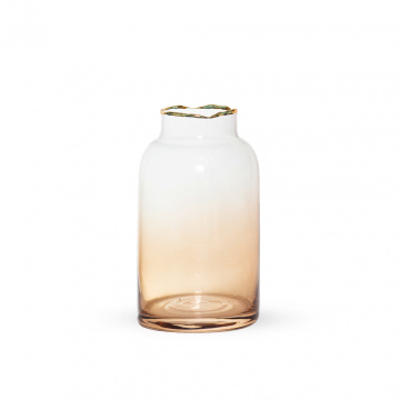 Описание Ваза стекло бежевая с золотым горлышком 13.5х7.5см