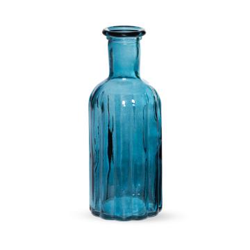 Описание Ваза стеклянная рифленая синяя 19х7,6 см
