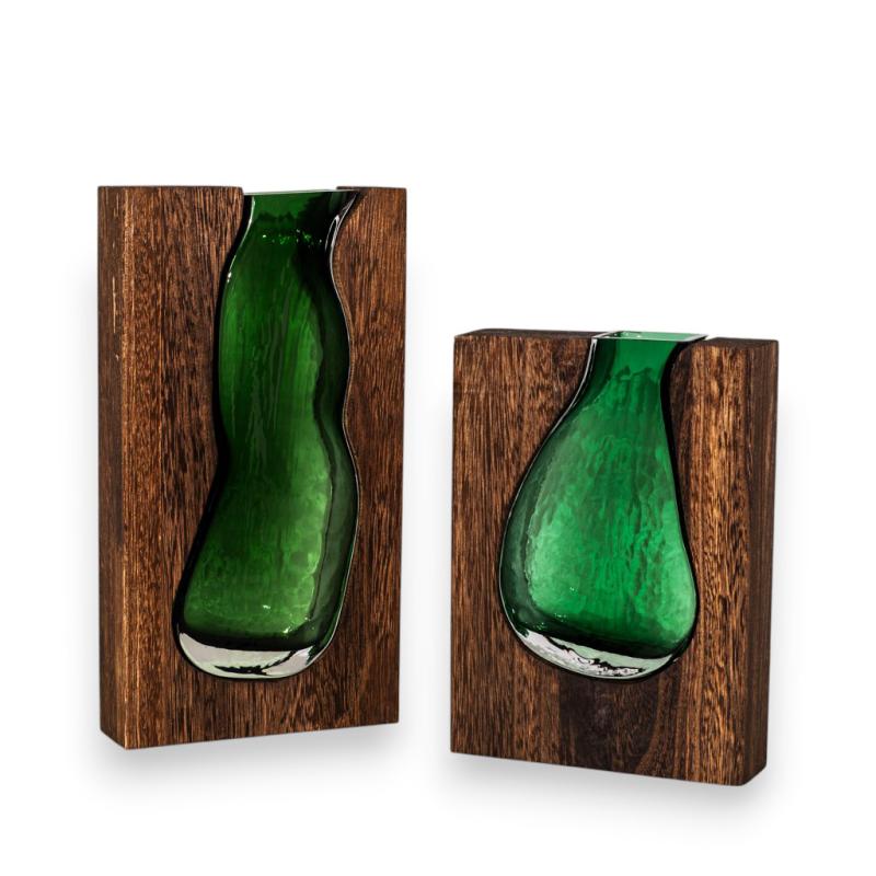 Описание Ваза стеклянная в деревянной раме River Wood 32см