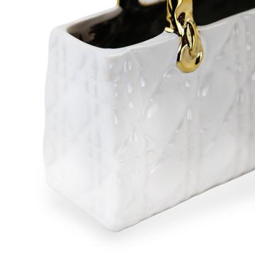 Описание Ваза сумка керамика Белая с золотом 22.8х10х21.5см