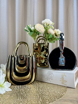 Керамическая ваза «Сумка Shine» — это стильное сочетание оригинального дизайна и сияющего блеска. Её форма в виде миниатюрной сумочки с зеркальным золотым покрытием смотрится эффектно и современно, превращая вазу в эксклюзивный элемент декора. Керамическая ваза создаёт атмосферу шика и станет изюминкой любого интерьера.