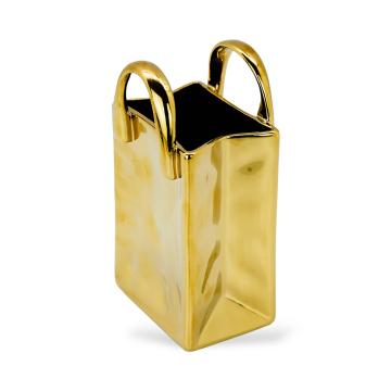 Описание Ваза керамическая Сумка Shine золото 18,8х8,5х10 см