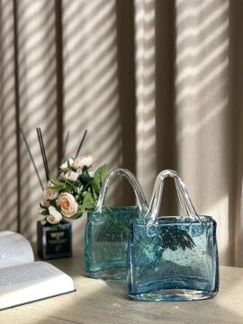 Ваза литое стекло Сумка бирюза 20,5см в магазине Кактус по лучшей цене. Большой ассортимент товаров в категории Вазы стеклянные с доставкой по Украине.