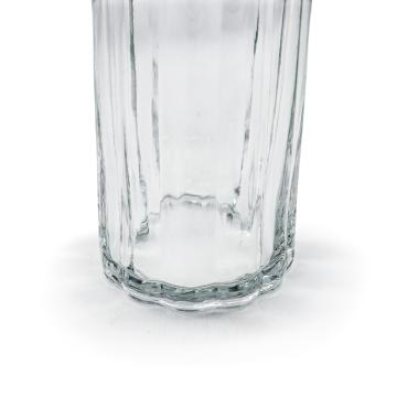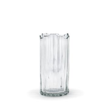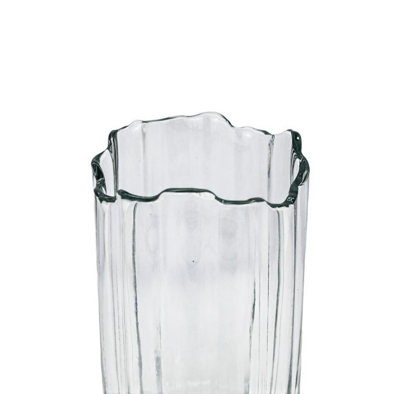Прозрачное стекло с рельефными вертикальными волнами и неровным волнистым краем придаёт вазе особый шарм. Ваза отлично подходит для высоких букетов, сухоцветов или может использоваться как самостоятельный акцент в декоре.