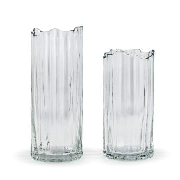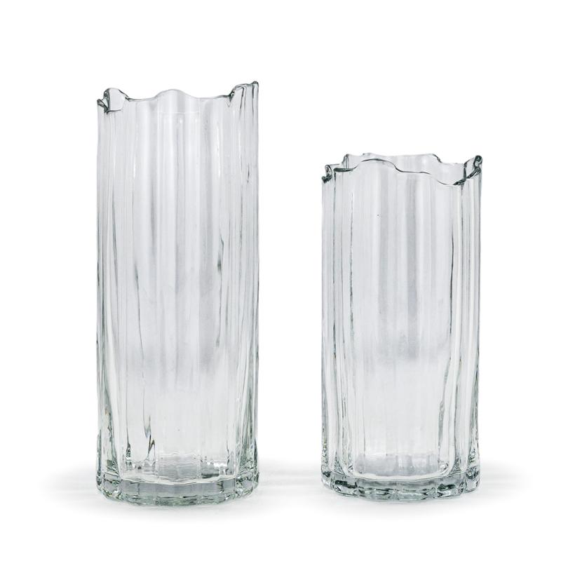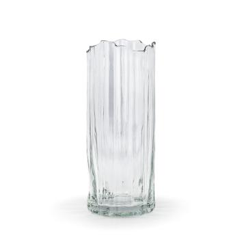 Прозрачное стекло с рельефными вертикальными волнами и неровным волнистым краем придаёт вазе особый шарм. Ваза отлично подходит для высоких букетов, сухоцветов или может использоваться как самостоятельный акцент в декоре.