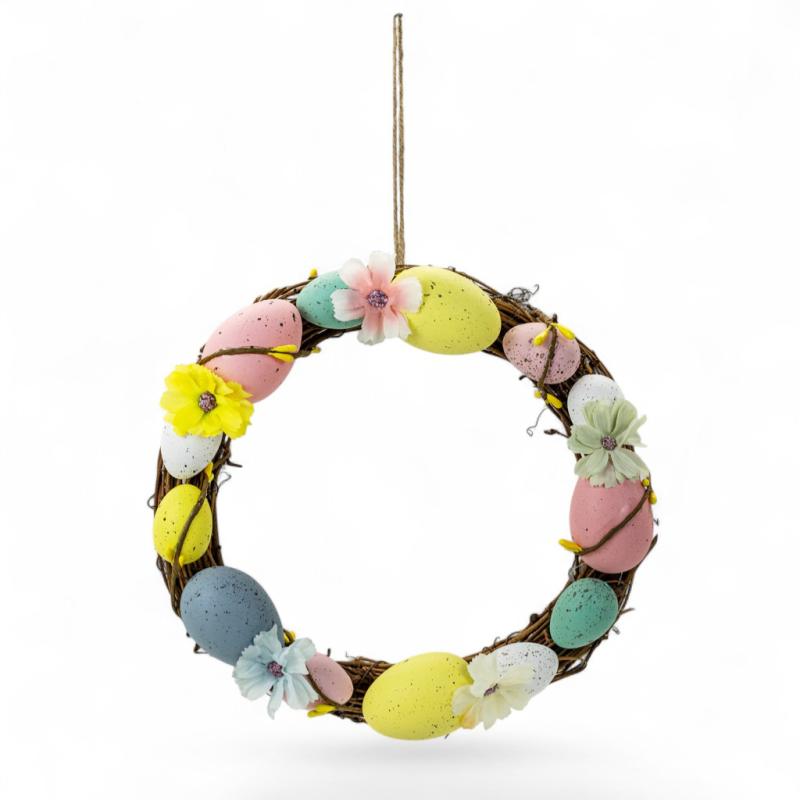 Описание Декоративный пасхальный венок с яйцами Пастель 23см
