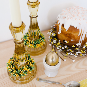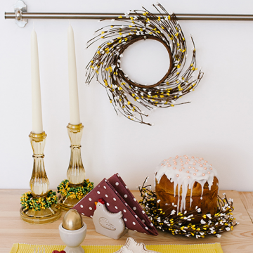 Описание Венок Пасхальный зеленый с желтым капли 12см
