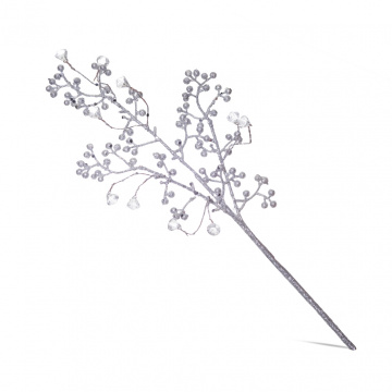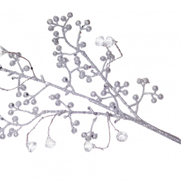 Описание Ветка глитер серебро 35 см