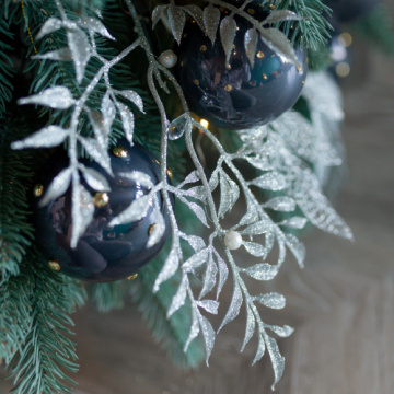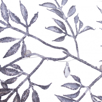 Описание Ветка листья с жемчужинами глиттер серебро 45 см
