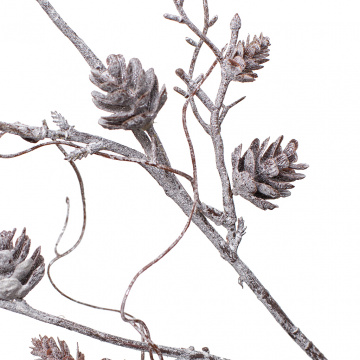 Описание Ветка сосны с шишками глиттер 62 см