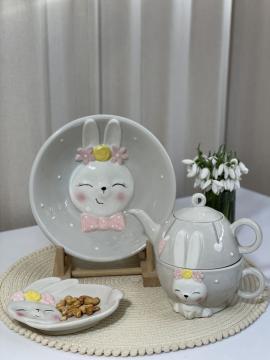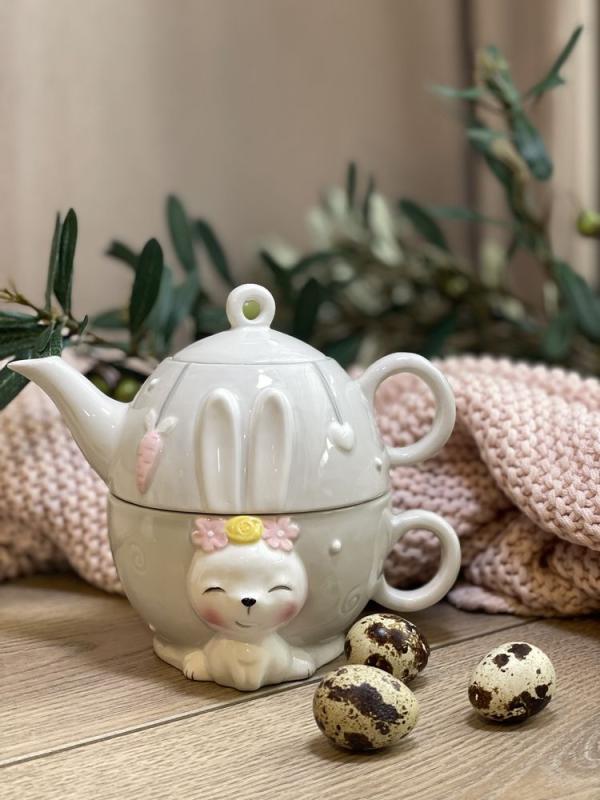 Заварник с чашкой «Зайчик» – уютное дополнение на праздничном столе. Этот очаровательный заварник с милым зайчиком создан для уютных чаепитий. Уникальная конструкция «2 в 1» – верхняя часть заварник, а нижняя чашка – делает его не только практичным, но и стильным дополнением к вашему пасхальному утру. Идеален для заваривания ароматного чая, которым можно насладиться во время праздника с куличами и сладостями!