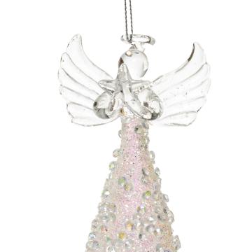 Опис Ангел скляний з кришталевим бісером7,5х18см