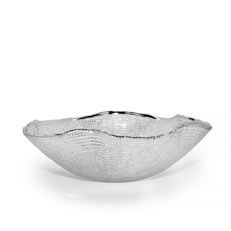Скляне глибоке блюдо відмінно підійде для подачі фруктів, салатів, десертів, солодощів, випічки чи закусок. Глибока форма робить подачу зручнішою, а сам скляний посуд сервіровки гармонійно виглядає і на кожен день, і у святковому сервіруванні. Страва «Хвиля» допомагає красиво оформити стіл та додати подачі акуратний сріблястий акцент.
