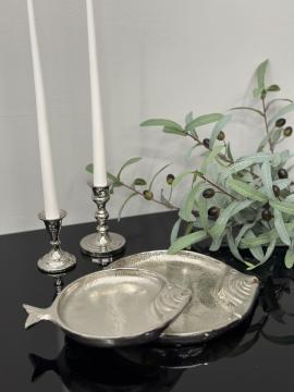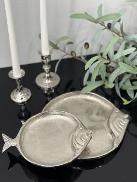 Металеве блюдо Риба представлене у двох розмірах, що дозволяє гнучко адаптувати її під будь-яке сервірування. Гладка металева поверхня ефектно відбиває світло, додаючи блиск вашому столу, а унікальний дизайн перетворює кожну страву на справжній кулінарний шедевр.