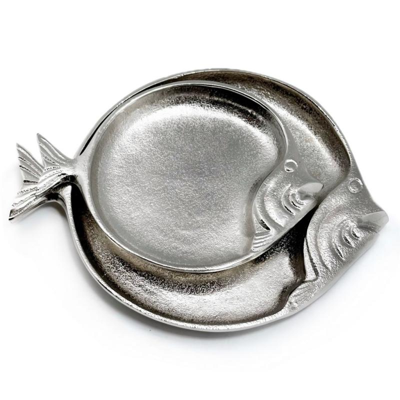 Металеве блюдо Риба представлене у двох розмірах, що дозволяє гнучко адаптувати її під будь-яке сервірування. Гладка металева поверхня ефектно відбиває світло, додаючи блиск вашому столу, а унікальний дизайн перетворює кожну страву на справжній кулінарний шедевр.