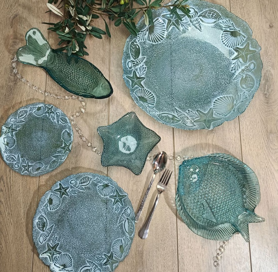 Асортимент морського посуду підніме сервірування на новий рівень. Скляні піали, страви, тарілки – це натхнення від океану та підводного світу. Сині, блакитні та блакитні відтінки наповнять простір життєвою енергією. Екологічно чисте скло безпечне та якісне для щоденного використання. Виріб рекомендується мити вручну м'якими засобами.