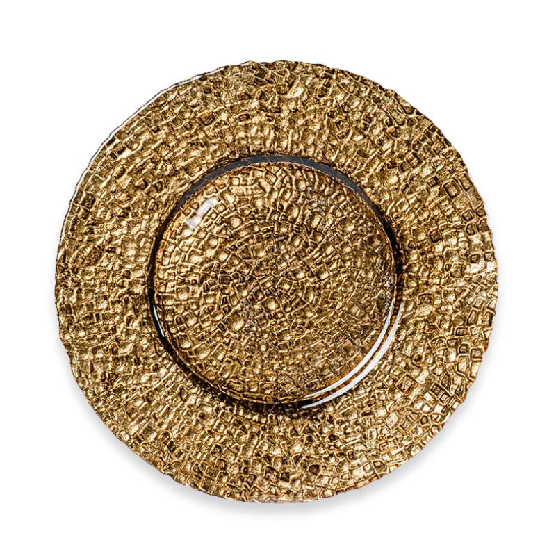 Стеклянное блюдо «Мозаика» вносит элемент неожиданности в сервировку стола. Имитация бронзы и старинного узора поднимает праздник на новый уровень. Тарелка с успехом выполнит функцию подтарельника благодаря своему размеру. На цветном блюде контрастно выделяются тарелки черных и белых оттенков.