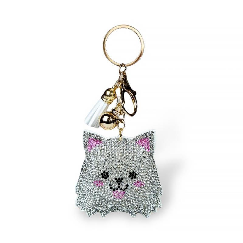Додайте блиску та настрої у повсякденність з брелоком «Мордочка собаки». Сяюче срібло, виразні очі і рожеві щічки роблять брелок по-справжньому чарівним. Блискуча текстура з камінням надає грайливості та виділяє його серед інших. Брелок легко кріпиться до ключів, рюкзака або сумки, а декоративний пензлик додає акцент і настрій.