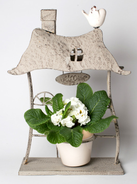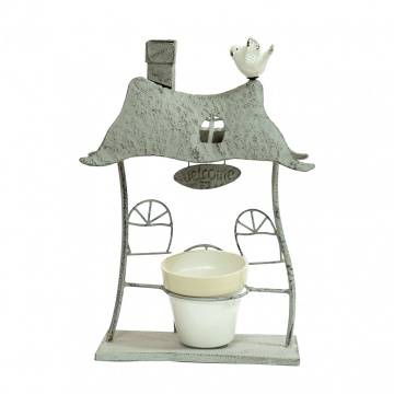 Опис Будиночок метал з пташкою і 1 вазоном 23см