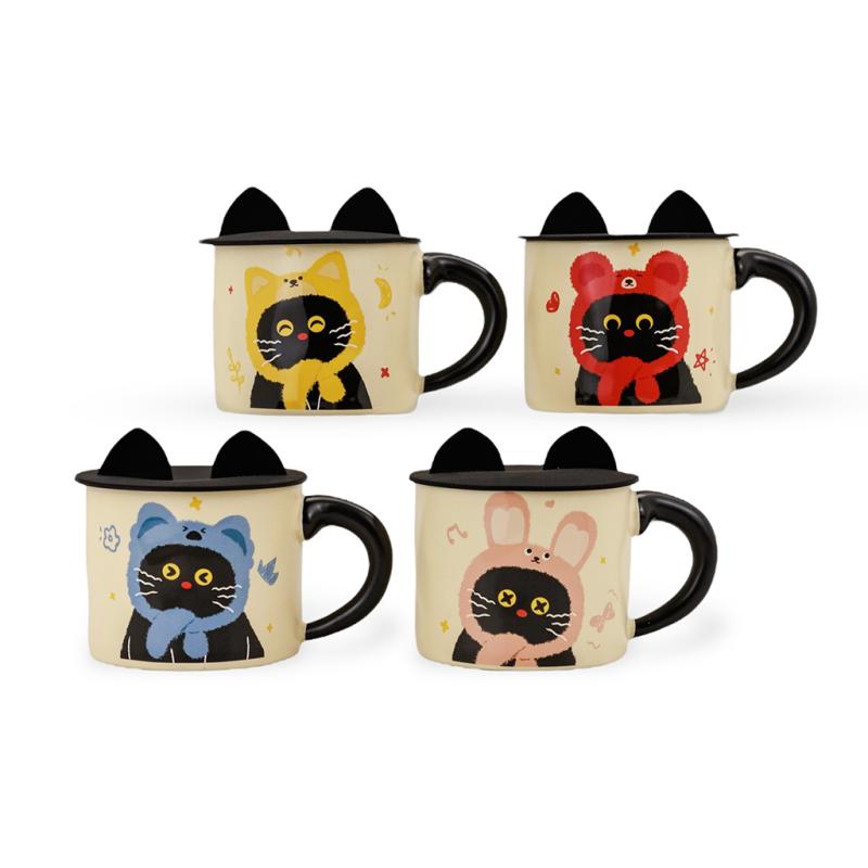 Опис Чашка керамічна з кришкою Котик у шапці 4 види 350 мл
