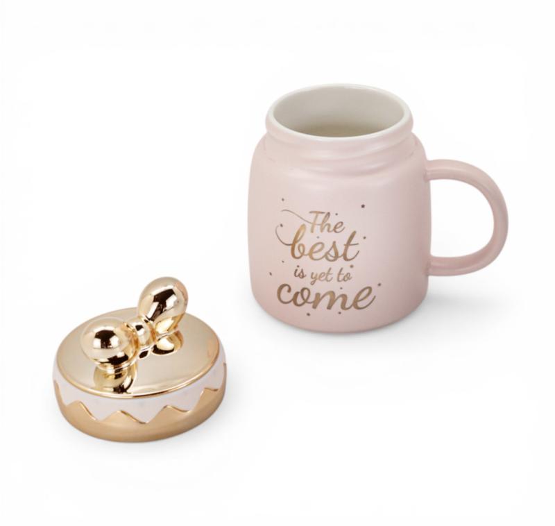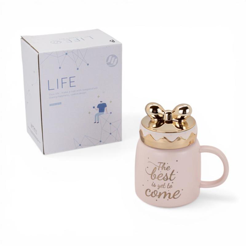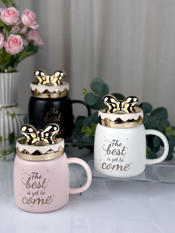 Керамічна чашка з кришкою «Бантік» виглядає дуже акуратно та по-справжньому красиво. Кришка із золотавим бантиком відразу робить її більш ошатною, тому така чашка приємно виглядає і вдома, і на робочому столі. У ній є і практичність, і те саме відчуття гарного посуду, який просто радує око щодня.