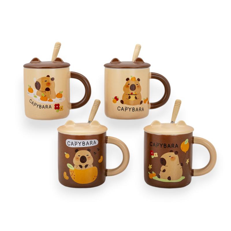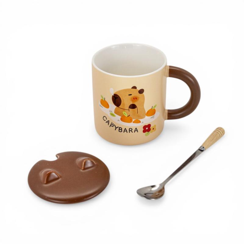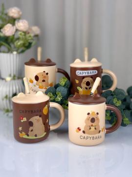 Опис Чашка керамічна з кришкою та ложкою Капібара 4 види 350мл