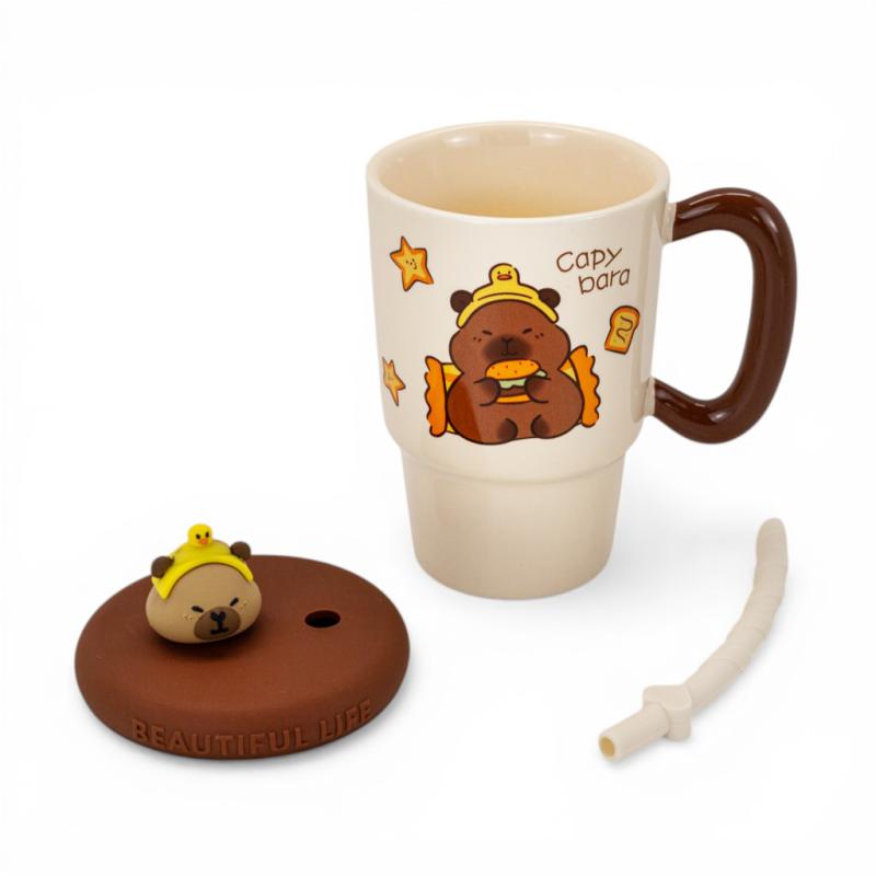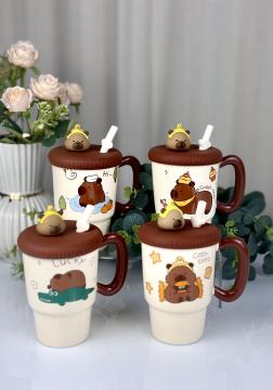 Опис Чашка керамічна з кришкою та трубочкою Капібара 4 види 370мл