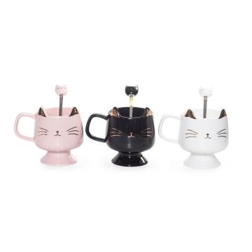 Чашка Котик на підніжці з ложкою 250 мл 3 види