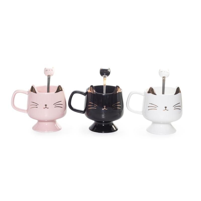 Опис Чашка Котик на підніжці з ложкою 250 мл 3 види