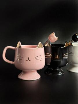 - Незвичайна форма чашки у вигляді котика з металевою ложечкою у формі котячої мордочки.