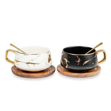 Опис Чашка Мармур з блюдцем та ложкою 2 види 300мл