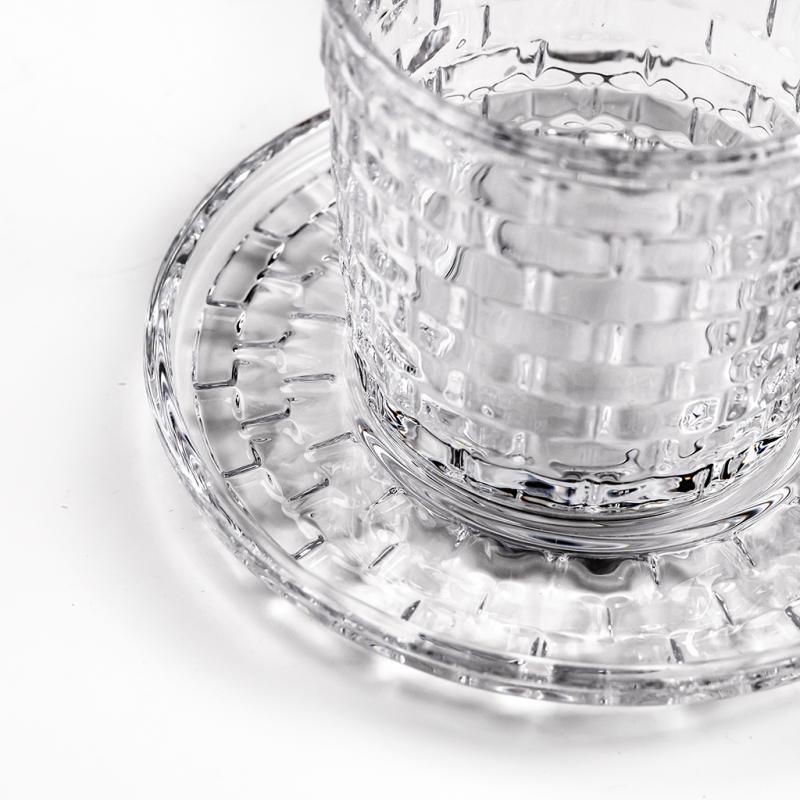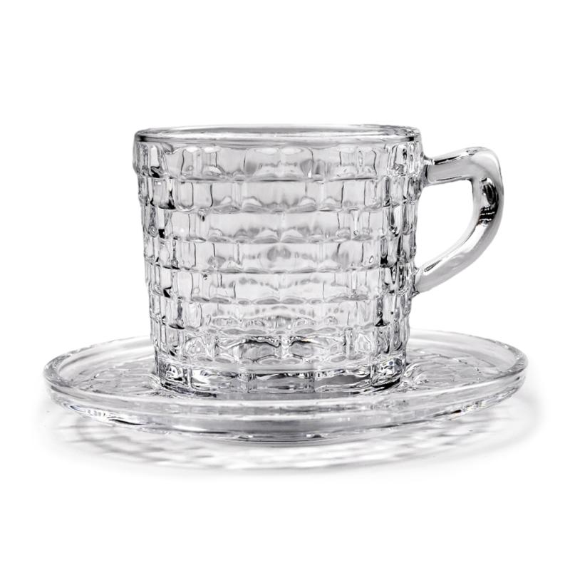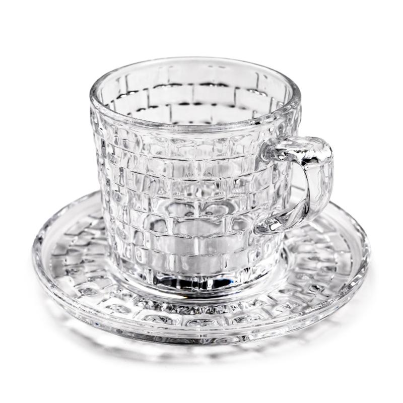 Елегантна скляна чашка зі блюдцем з колекції "Плетіння" - це витончене доповнення до вашої чайної або кавової паузи. Виготовлена з прозорого литого скла, чашка із блюдцем прикрашена виразним рельєфом, що імітує текстуру плетіння. Цей комплект ідеально підійде для подачі ароматної кави, міцного чаю, трав'яних настоїв та десертів у порційній подачі.