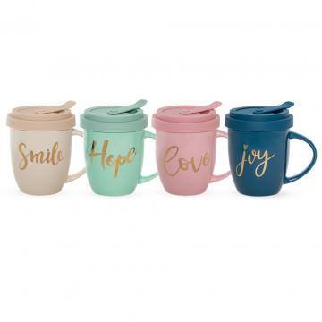 Колекція чашок кришкою – це практичність та якість на кожен день. Виготовлені із міцного кістяного фарфору вироби обпалюються двічі у печі. Зверху посуд покритий глазур'ю.