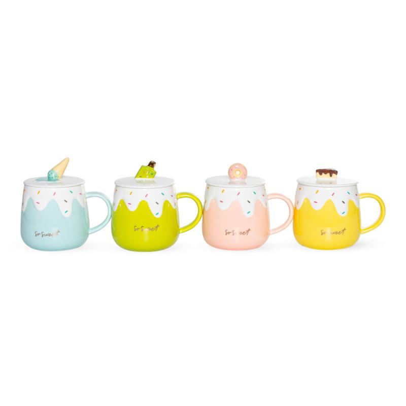 Керамічні чашки «Морозиво» представлені у чотирьох кольорах: рожева, блакитна, жовта та помаранчева. Вироби бажано мити вручну м'якими миючими засобами.