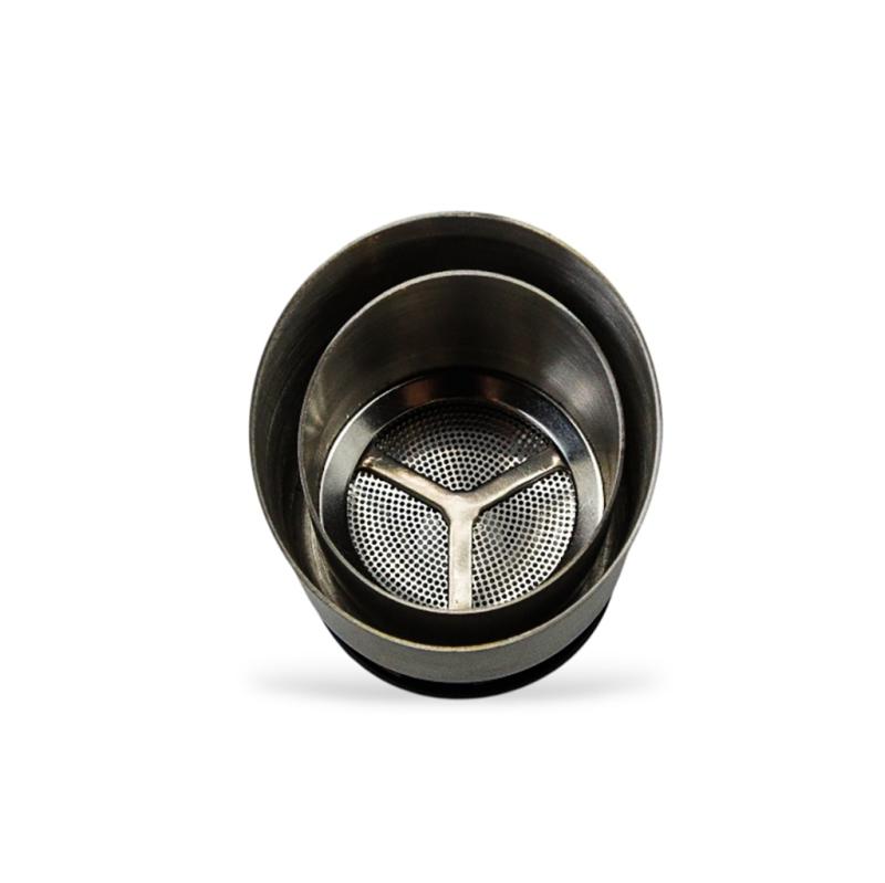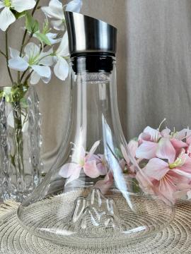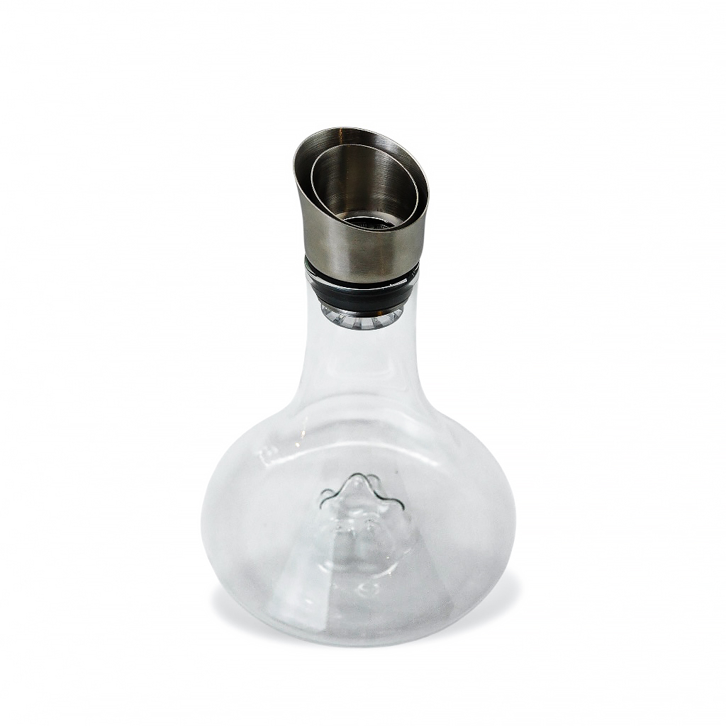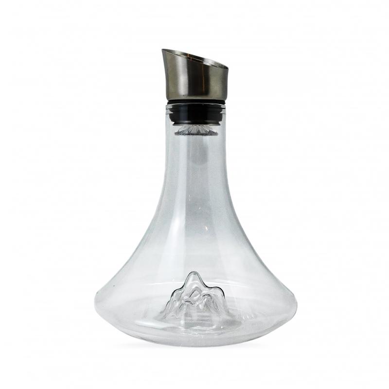 Виготовлений із міцного боросилікатного скла, декантер оснащений металевою кришкою з ситом, що захищає від пилу та фільтруючої домішки при наливанні. Усередині – PP-розсіювач, що створює ефект «водоспаду»: він аерує вино, прискорюючи окислення та розкриття букета. Пробка виконує функцію аератора, а дно у вигляді вулкана полегшує захоплення під час подачі.
