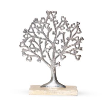 Декор «Дерево Життя» - це філософський акцент, що відображає ідею вічного розвитку, гармонії та внутрішньої сили. Такий виразний декор стане центром тяжіння в будь-якому просторі: витончена вітальня, кабінет або зона відпочинку. Вишукане переплетення гілок виконано з благородного алюмінію з матовим сріблястим блиском, а основа з натурального мангового дерева підкреслює природну теплоту та стійкість. Розмір: 26,5х7х20,5 см Колір: срібло Матеріал: алюміній, основа — мангове дерево Символіка: «Дерево Життя» — знак стійкості, росту та благополуччя Завдяки універсальному дизайну, декор органічно впишеться як в сучасний, так і в класичний інтер'єр • для прикраси кон • у кабінеті, на робочому місці або в зоні медитації як символічний подарунок близькій людині Додайте в інтер'єр трохи сенсу, затишку та гармонії — виберіть декор «Дерево Життя» для себе або на подарунок тим, хто вам дорогий.